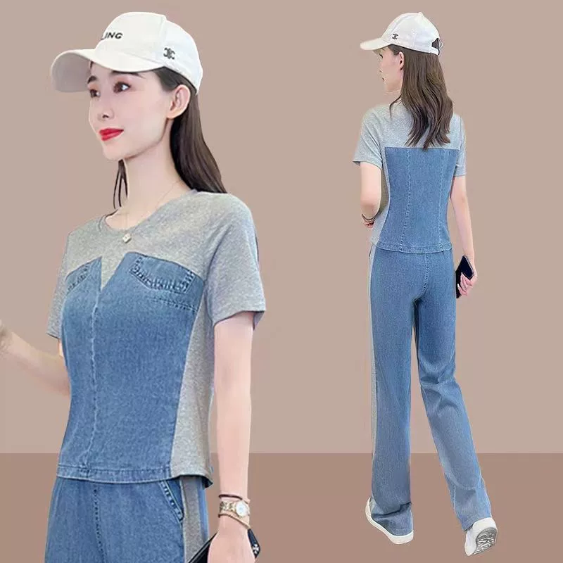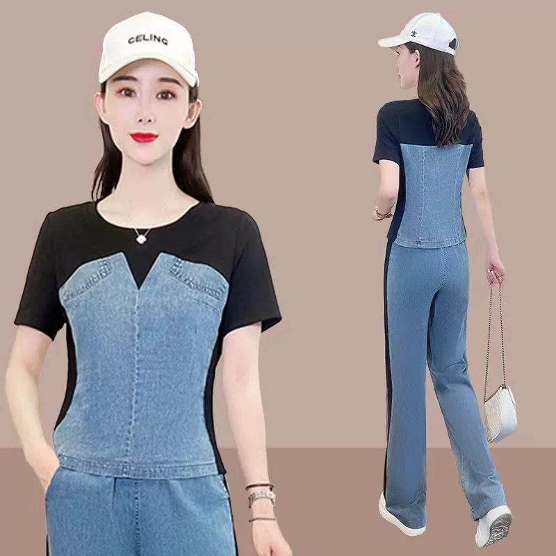 | nameOriginal | Denim design stitching straight wide leg pants T-shirt |