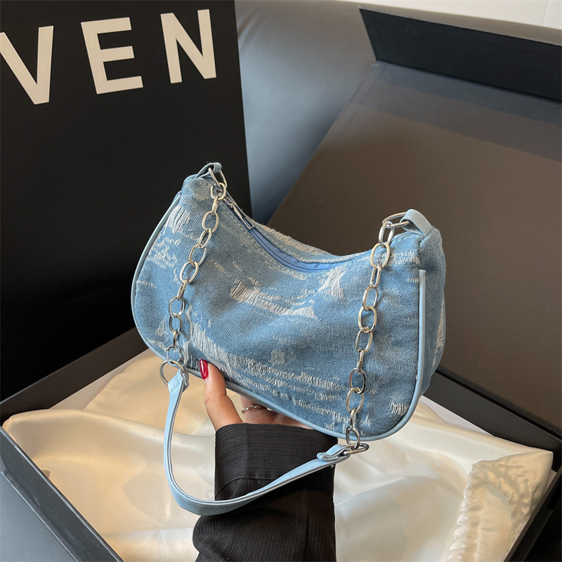 | nameOriginal | Denim Fashion Internet Popular Chain Shoulder Bag Women's 2023 Summer New Armpit Bag Casual Small Square Bag |