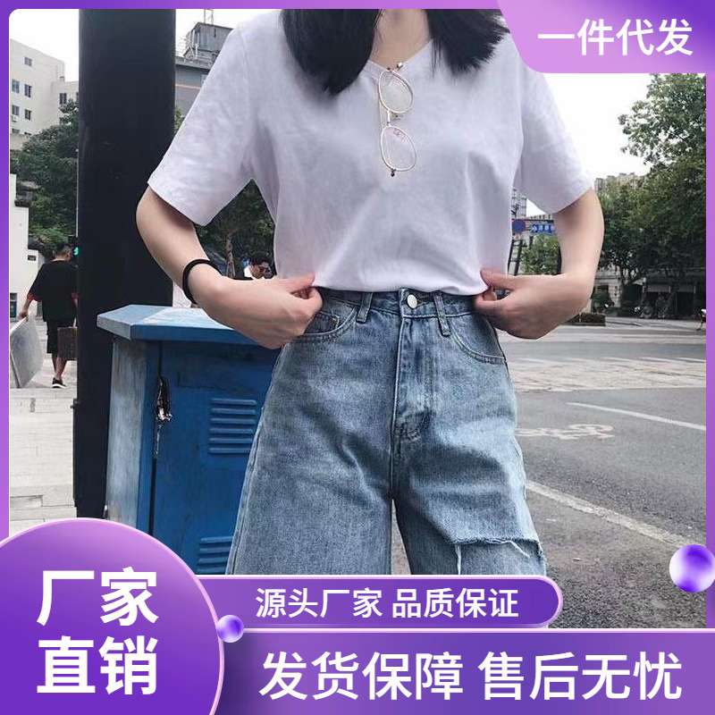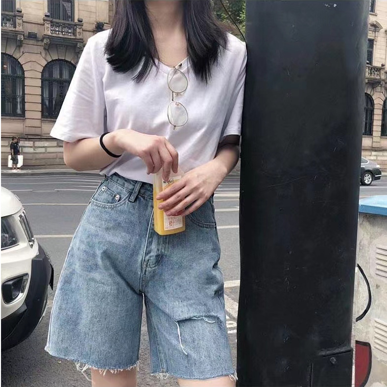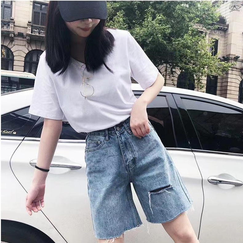 | nameOriginal | Denim Five-point Pants Women's Loose Straight Mid-length Pants Hong Kong-style Hole Mid-length Pants Trendy Outer Wear Torre Pants Mid-length Shorts |