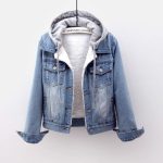 Denim Fleece-lined Coat Women's Winter 2023 Korean Style Thickened Cotton-padded Coat Short Detachable Hooded Lamb Fleece Cotton-padded Coat Women