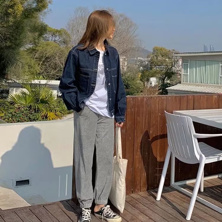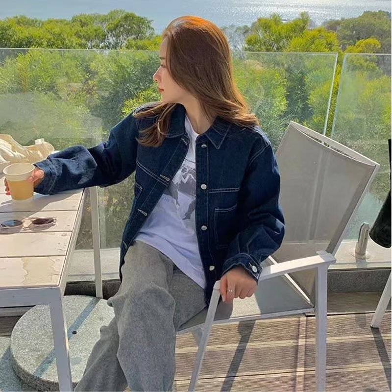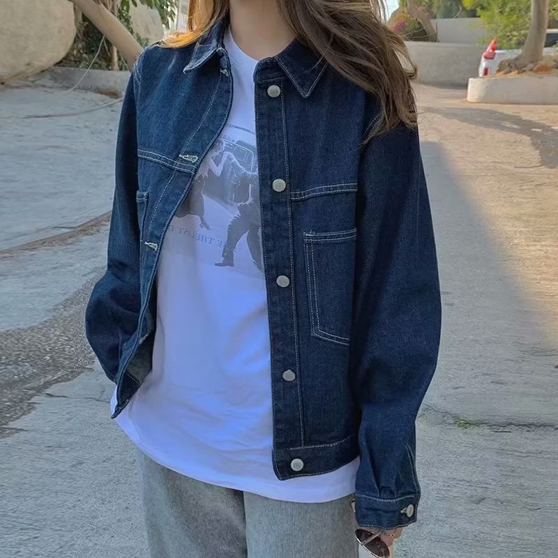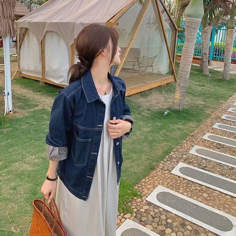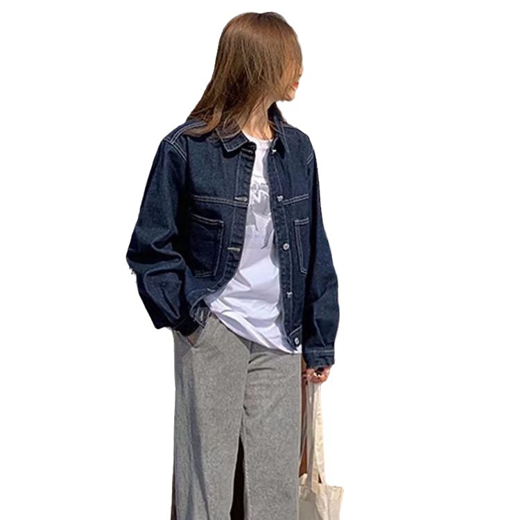 | nameOriginal | Denim Jacket Female Student 2021 Spring and Autumn Korean Style New Loose BF All-match Large Pocket Mid-length Work Top |