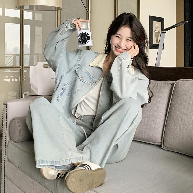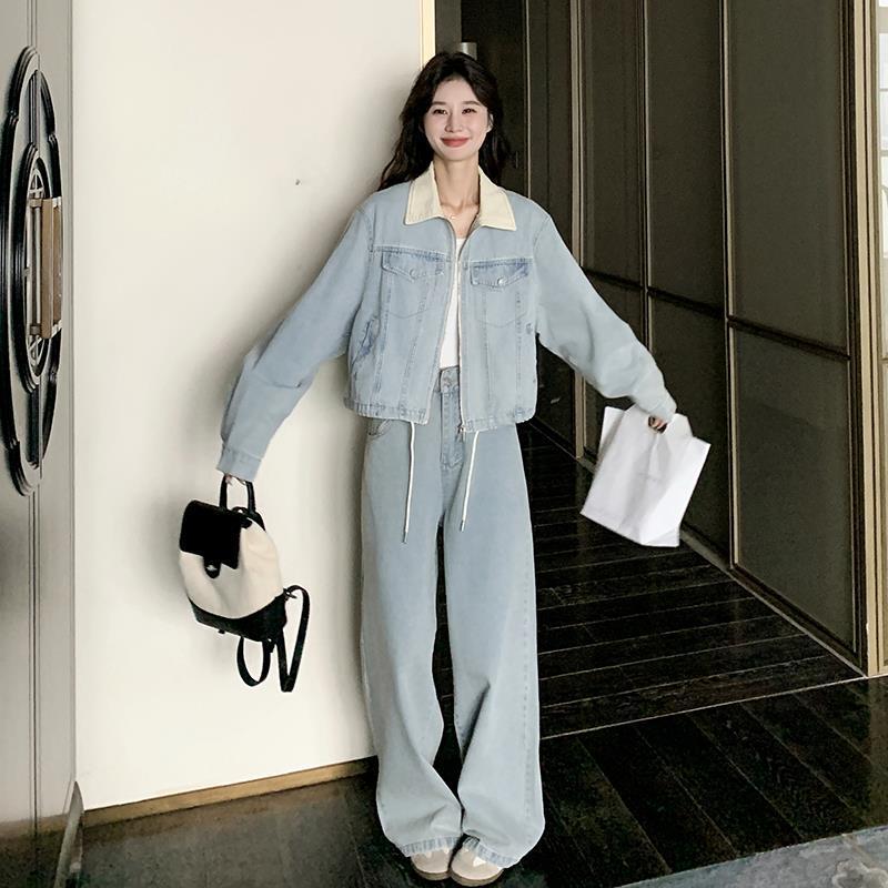 | nameOriginal | Denim Jacket Trousers Fashion Suit Women's Spring and Autumn Korean Style Wear Age-reducing Hong Kong Style Retro Casual Two-piece Set |