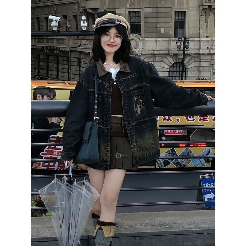 | nameOriginal | Denim Jacket Women 2024 New Early Autumn American Short Loose Embroidered Design Sense Stacked All-match Top |