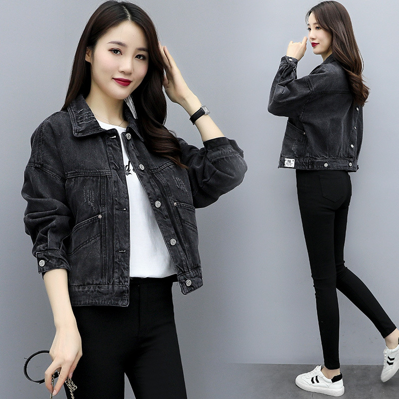 Denim Jacket Women's Short Black Internet Celebrity Autumn Women's Western Style 2021 Spring and Autumn Korean Style Loose Tall Jacket Trendy