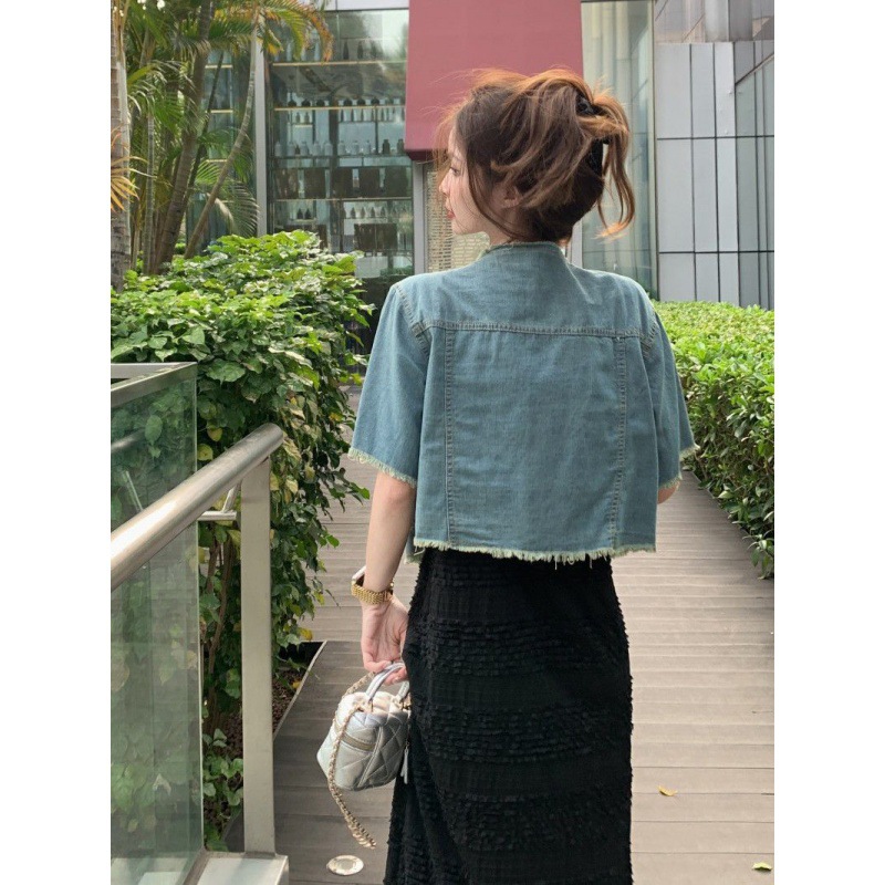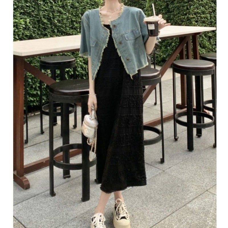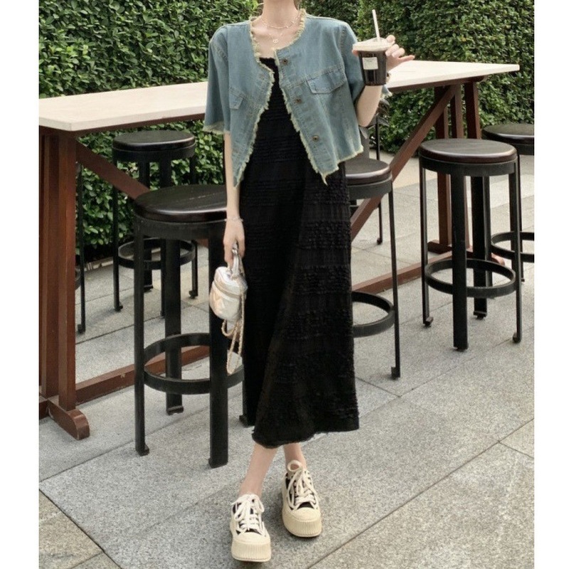 Denim raccoon women’s slim fit 2023 Summer new short Denim coat sling dress two-piece suit