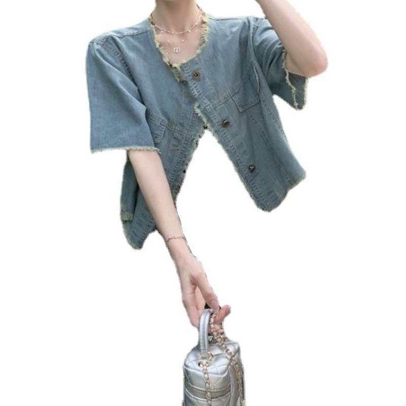 Denim raccoon women's slim fit 2023 Summer new short Denim coat sling dress two-piece suit