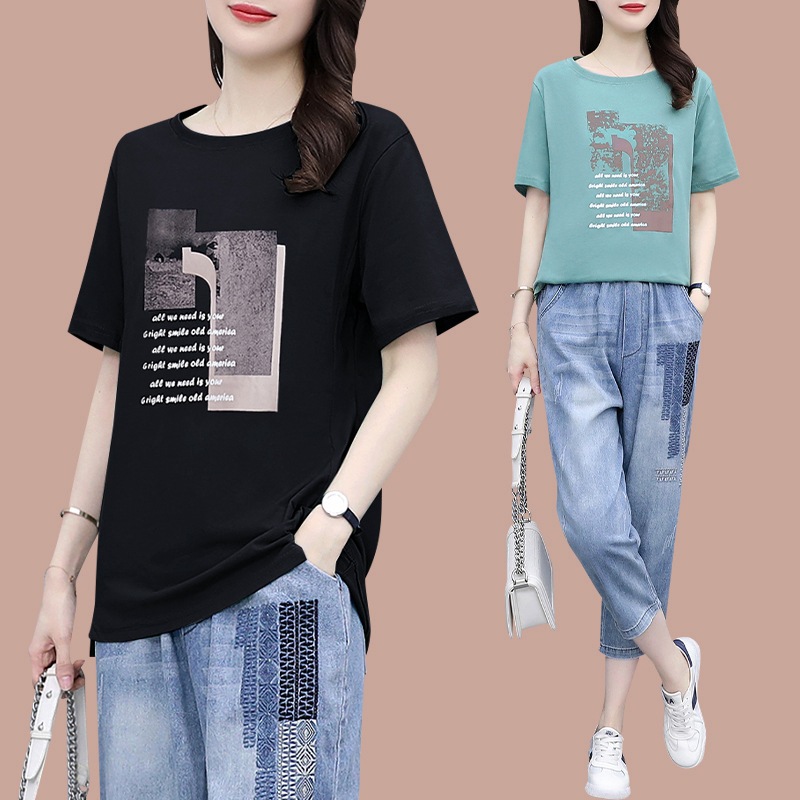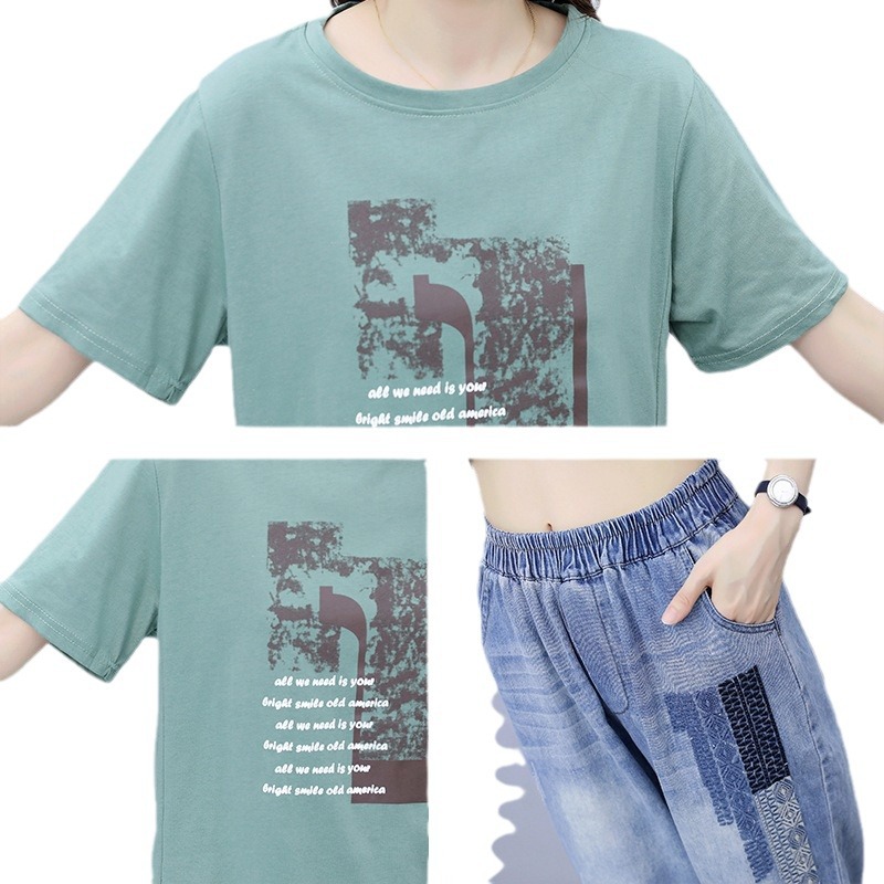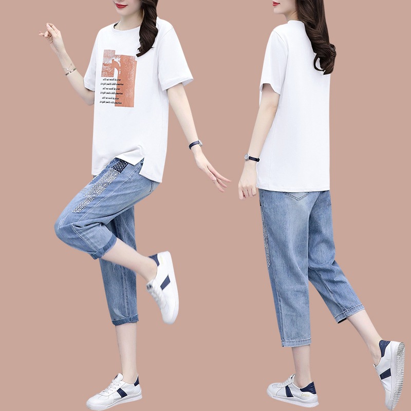 | nameOriginal | Denim Set Women's Summer 2024 New Printed Cropped Pants Cotton Two-piece Fashionable Casual Age-reducing Top |