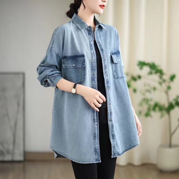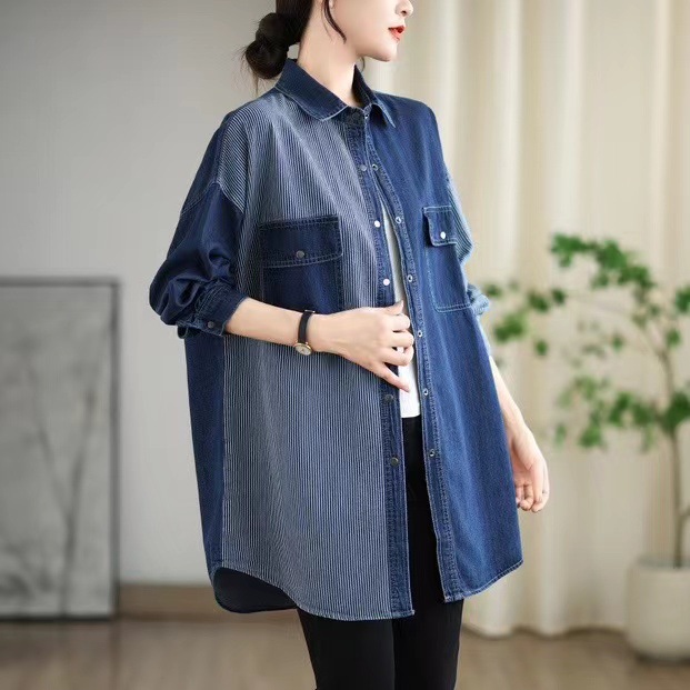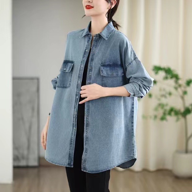 | nameOriginal | Denim Shirt Women's 2024 Summer New Arrival Retro Loose plus size Shirt Polo Top Trendy |