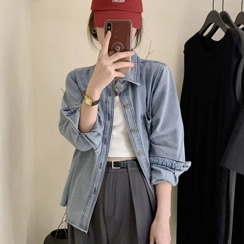 Denim Shirt Women’s Loose Denim Long-sleeved New All-match Casual Students Spring and Autumn plus size Korean Style Shirt Jacket