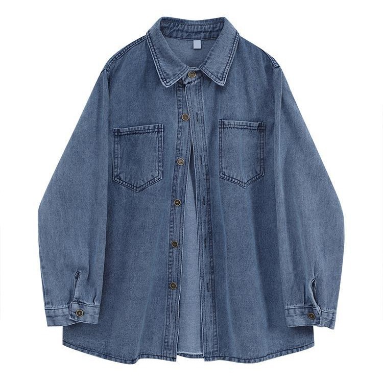 Denim Shirt Women's Loose Denim Long-sleeved New All-match Casual Students Spring and Autumn plus size Korean Style Shirt Jacket
