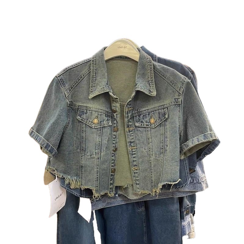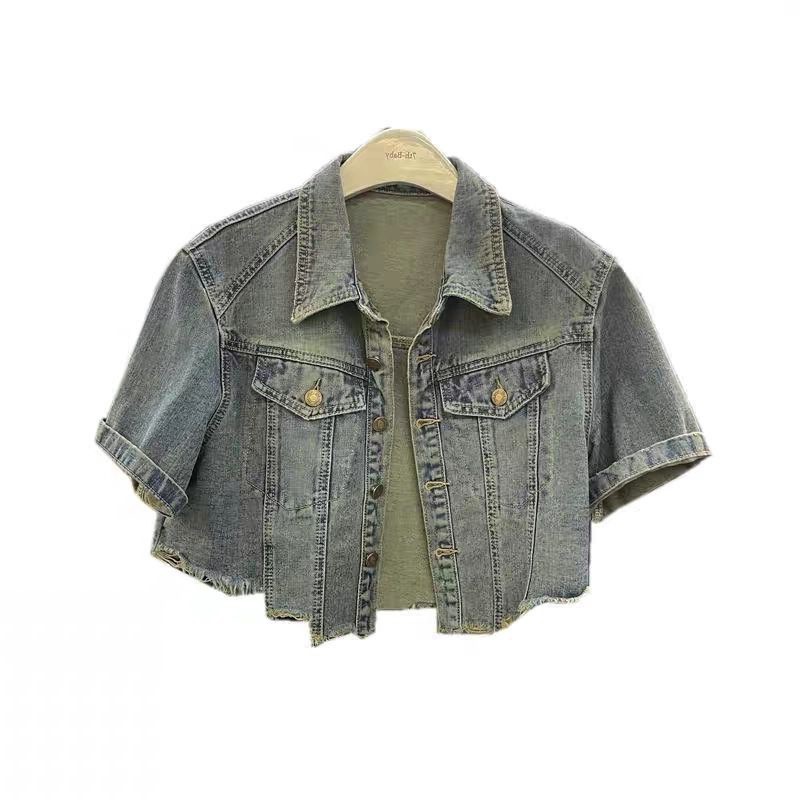 | nameOriginal | Denim Short Jacket Thirteen Lines Spring New American Niche Retro High Waist Short Jacket Short Sleeve Jacket for Women |