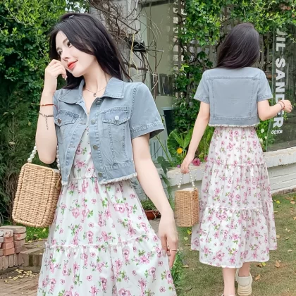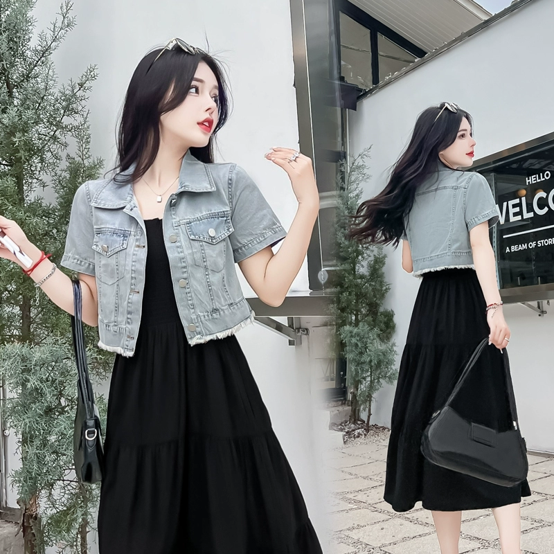 | nameOriginal | Denim short jacket women's short-sleeved thin summer 2024 new style with suspender skirt shawl small outer cardigan top |