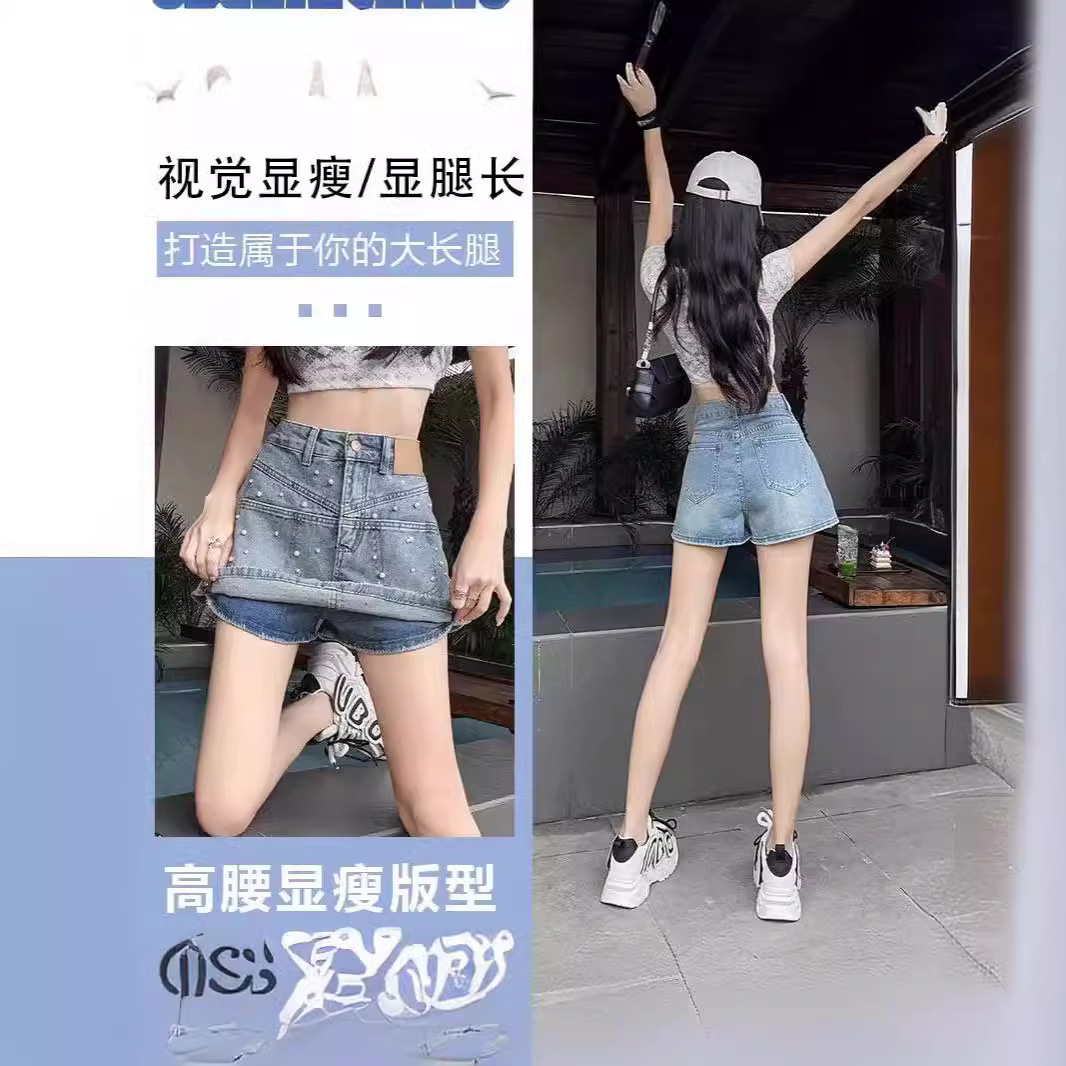 Denim Short Pants Skirt Women’s Summer Thin 2024 New Slim Internet Celebrity Hot Drilling Loose Design Explosive Pants
