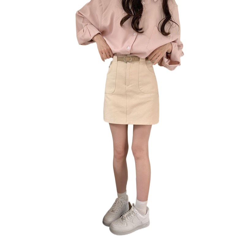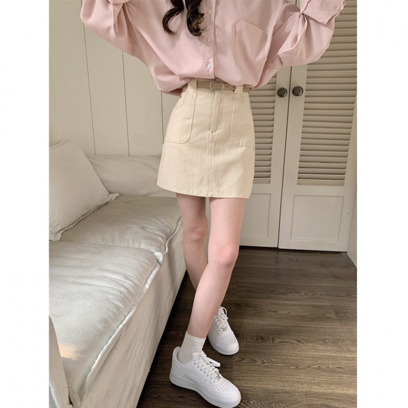 Denim Short Skirt Women's Spring and Summer 2024 New High Waist Slim A- line Short Skirt All-match khaki Anti-glare Skirt