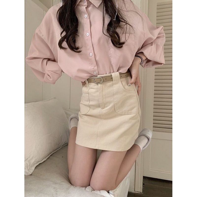 Denim Short Skirt Women’s Spring and Summer 2024 New High Waist Slim A- line Short Skirt All-match khaki Anti-glare Skirt