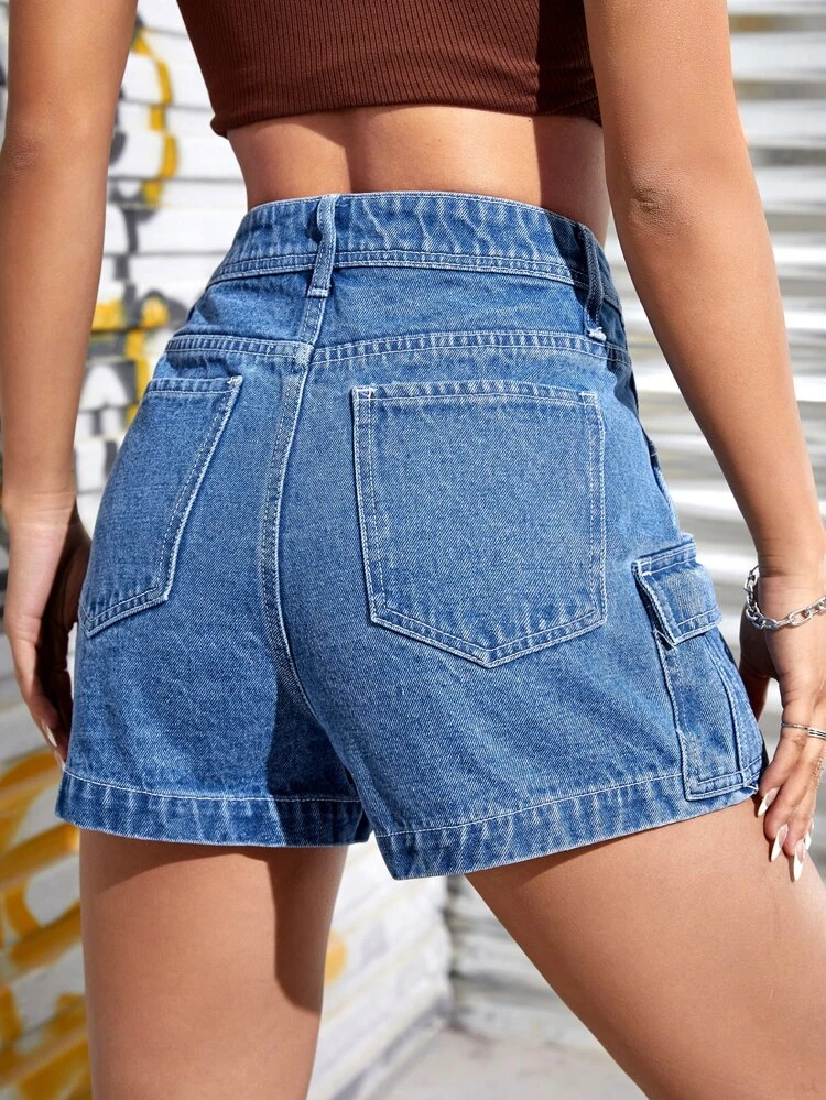 Introducing our stylish and versatile Flap Pocket Denim Shorts! These shorts are the perfect addition to your summer wardrobe, offering a comfortable and trendy option for any casual occasion. Made from high-quality denim material, these shorts are durable and designed to last. The flap pockets on the back add a touch of style and functionality, providing a secure place to store your essentials while on the go. The mid-rise waist and classic fit make these shorts flattering for any body type, while the frayed hem adds a touch of edginess to your look. Whether you’re running errands, heading to the beach, or just lounging at home, these Flap Pocket Denim Shorts are a must-have for any fashion-forward individual.
