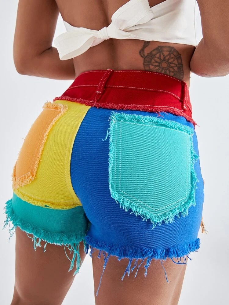 | nameOriginal | Colorblock Raw Hem Denim Shorts |