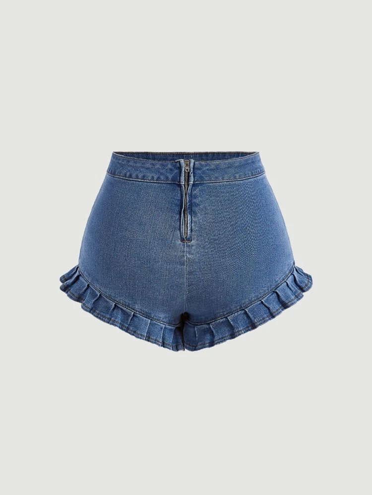 | URL | https://m.shein.com/SHEIN-MOD-Ruffle-Hem-Denim-Shorts-p-14046451-cat-1935.html |