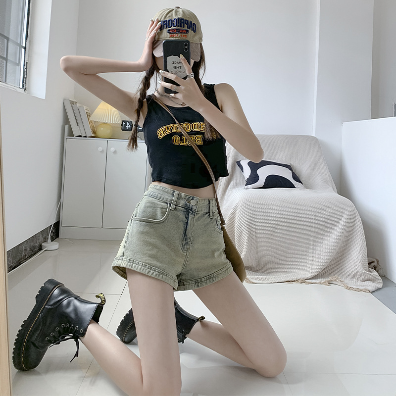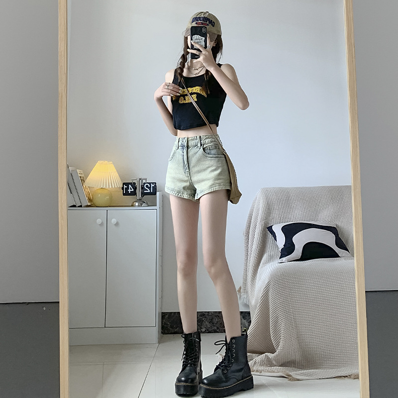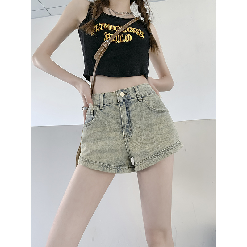 Denim Shorts Women's 2023 Summer American Style Hot Girl Yellow Clay Color High Waist Slimming Straight Hip A- shaped Ultra-short Hot Pants