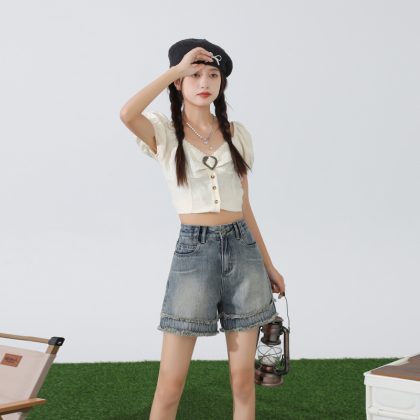 | nameOriginal | Denim Shorts Women's Summer Thin 2024 New Arrival High Waist Slimming Hot Hot Trousers with Hot A- Line Wide Leg |