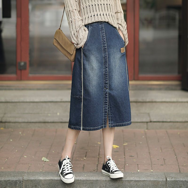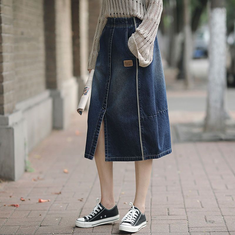 | nameOriginal | Denim Skirt for Children 2023 Spring and Autumn New Retro Simple Side Slit Mid Skirt Slimming All-match Artistic Half Skirt |