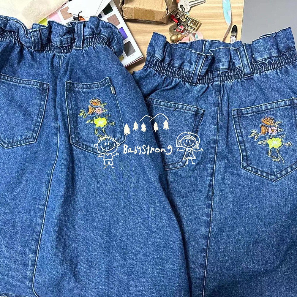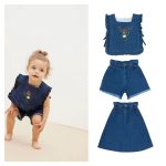 Denim Skirt Korean Style Fashionable thenewsociety Vest Baby’s Summer Wear Ruffled Skirt Skirt