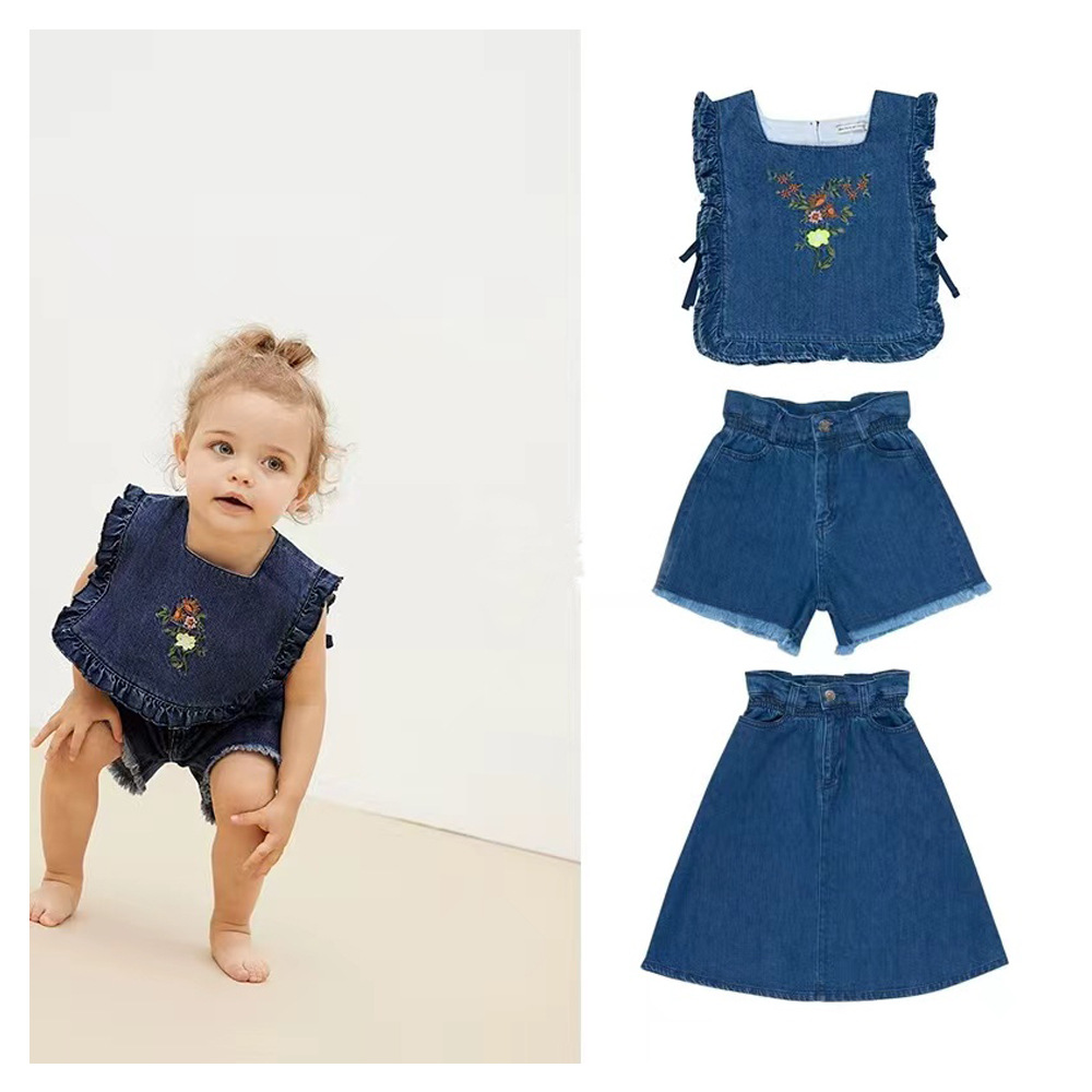 Denim Skirt Korean Style Fashionable thenewsociety Vest Baby's Summer Wear Ruffled Skirt Skirt