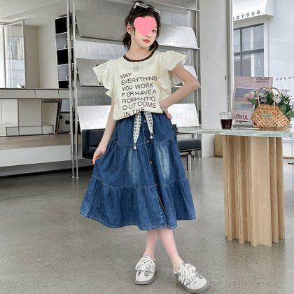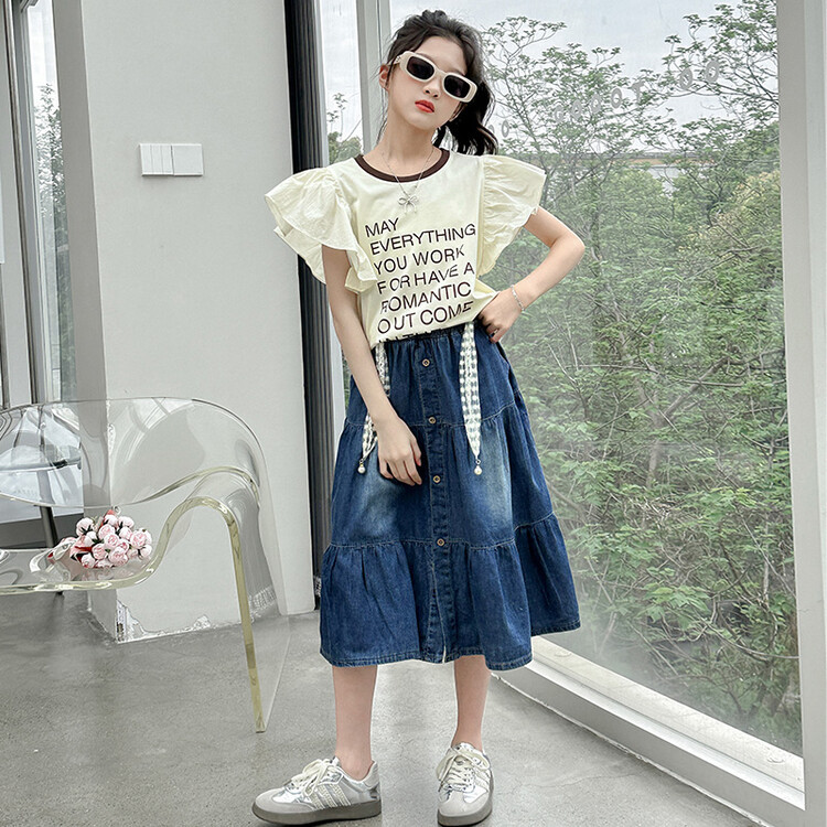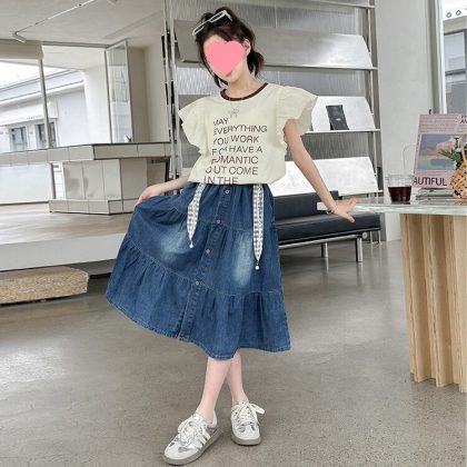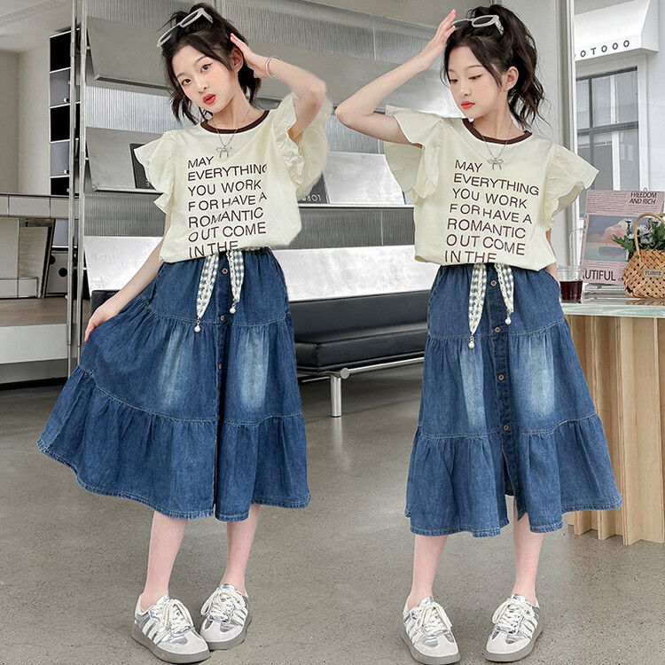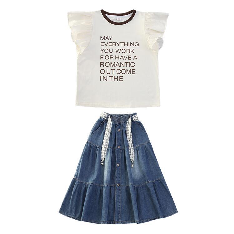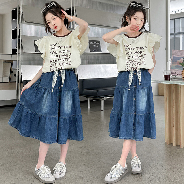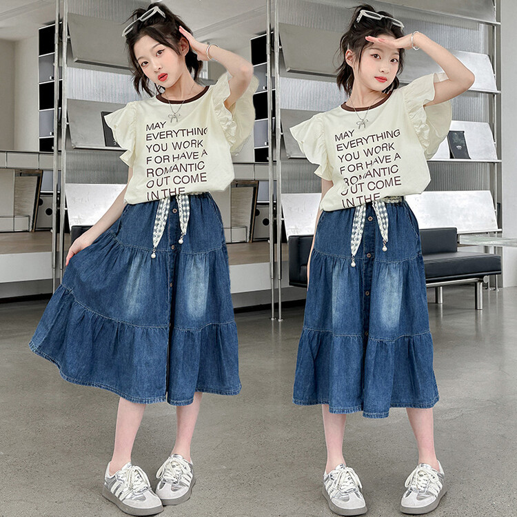 | nameOriginal | Denim Skirt Summer Big Girl Flying Sleeve Letter Short Sleeve Casual Denim Skirt suit |