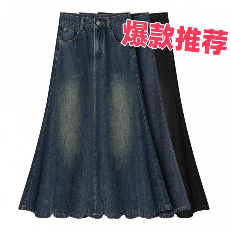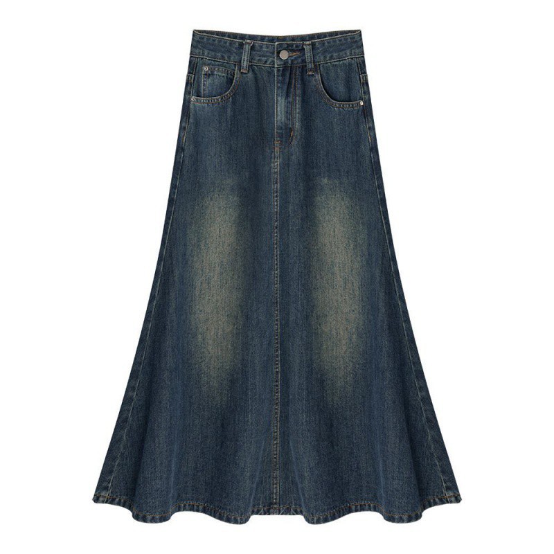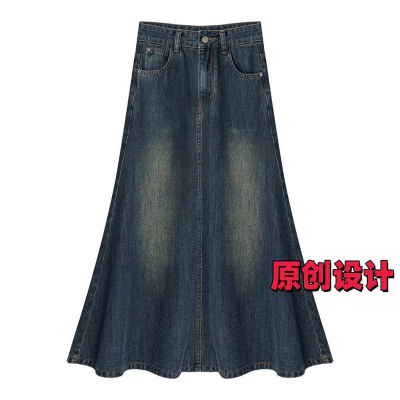 | nameOriginal | Denim Skirt Women's A2024 Spring and Summer Design Skirt High Waist Mid-length Loose Retro Slimming A- line Skirt |
