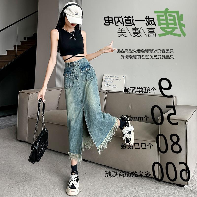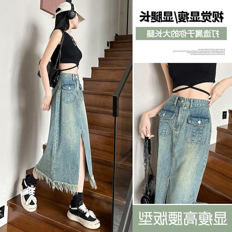 | nameOriginal | Denim Skirt Women's Summer High Waist Hip Skirt 2024 New Retro Straight Loose Casual Mid-length Overskirt |
