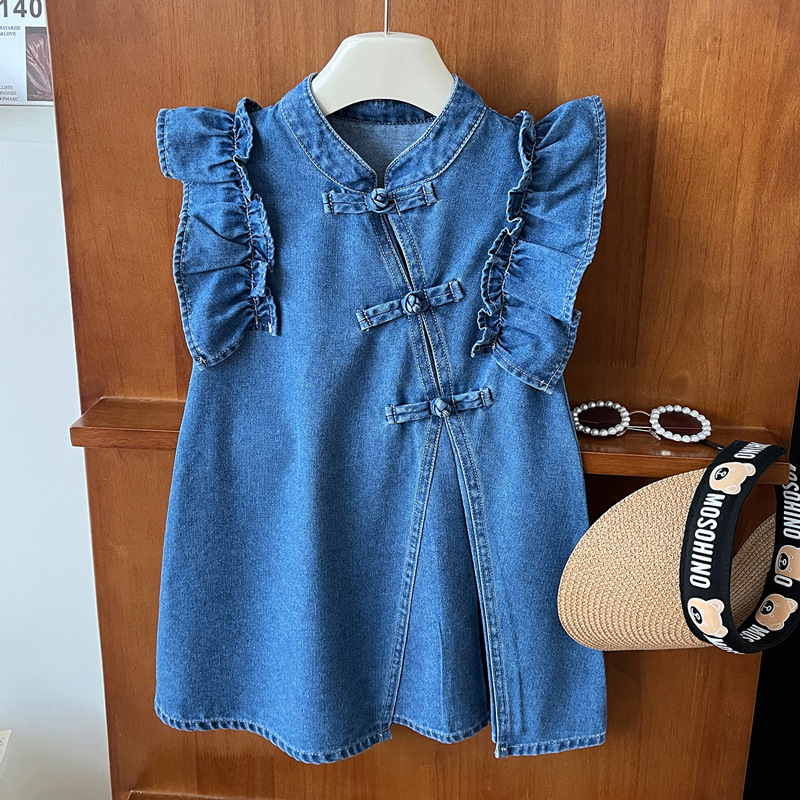 | nameOriginal | Denim Soft Children's Vest New dress Skirt with Buckle for Summer Princess Dress Women's Treasure Girl's Sleeveless New 2024 Chinese Style |