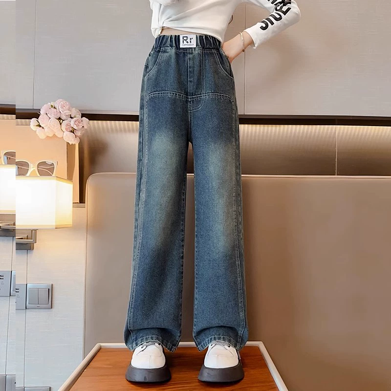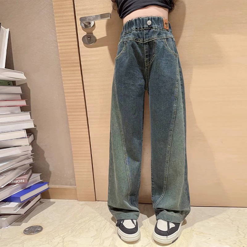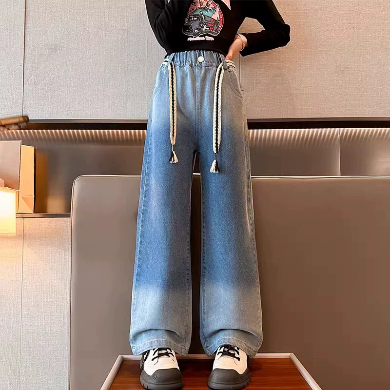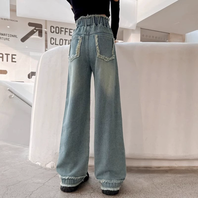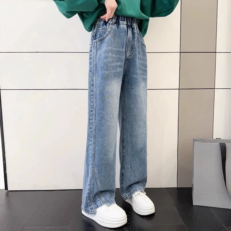 Denim spring and autumn girls’ thin wide-leg pants for junior high school students