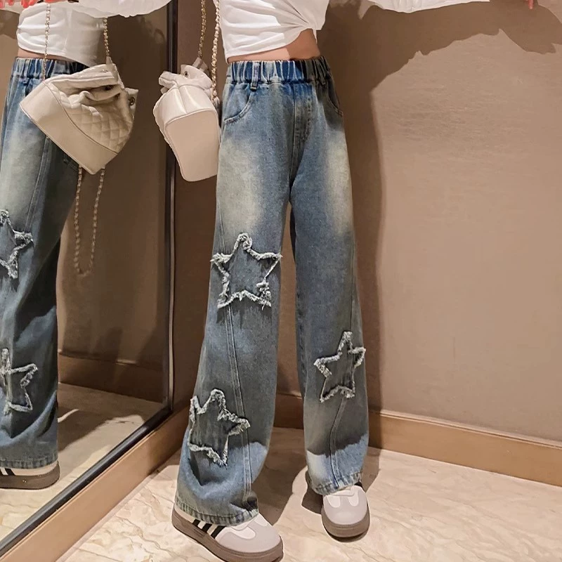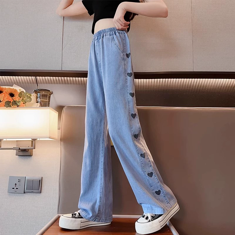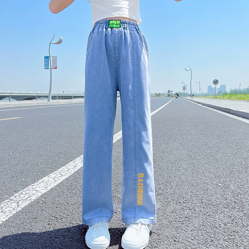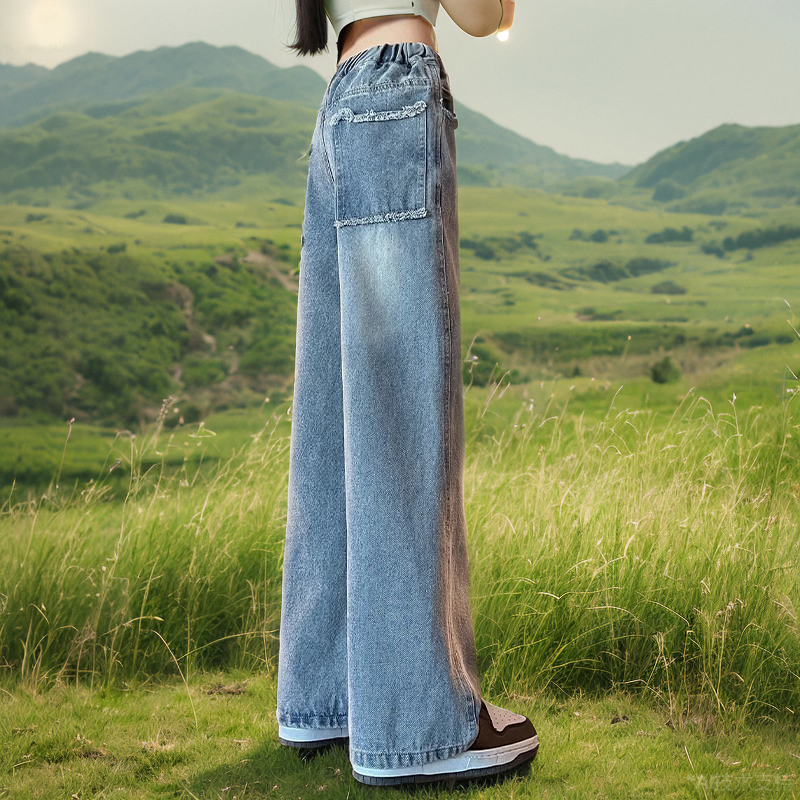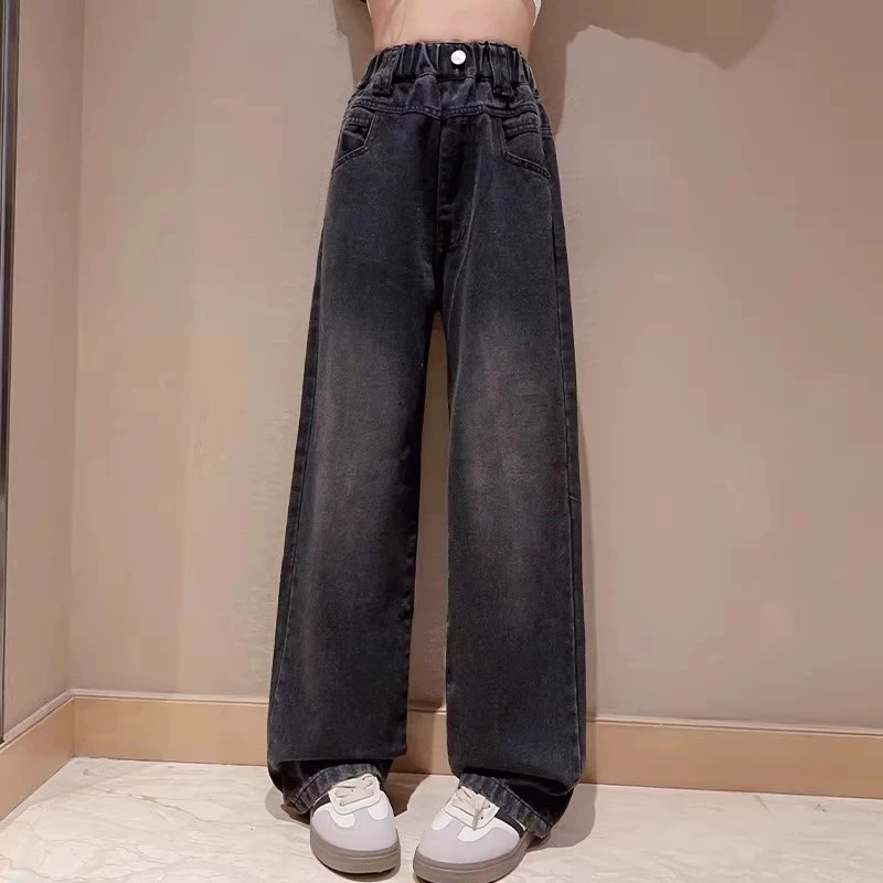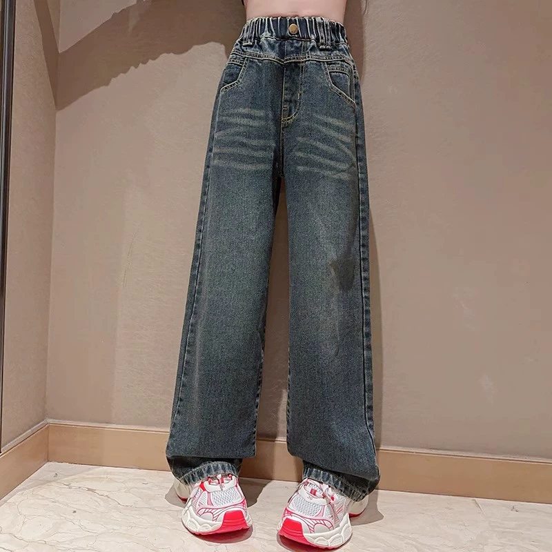 Denim spring and autumn girls’ thin wide-leg pants for junior high school students