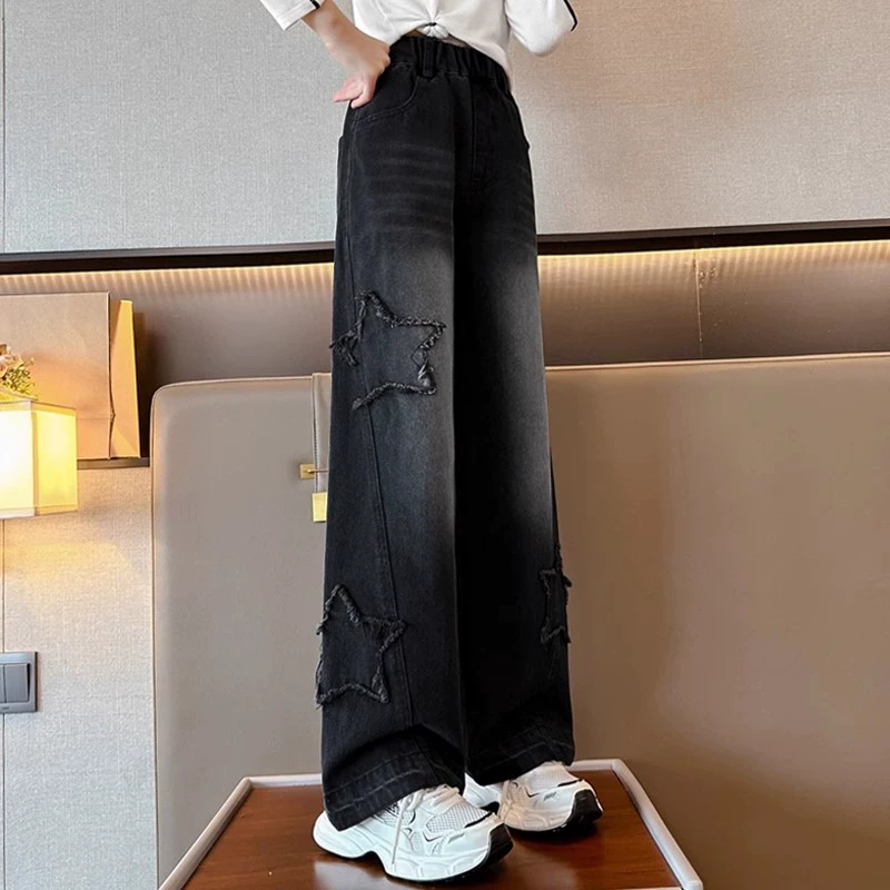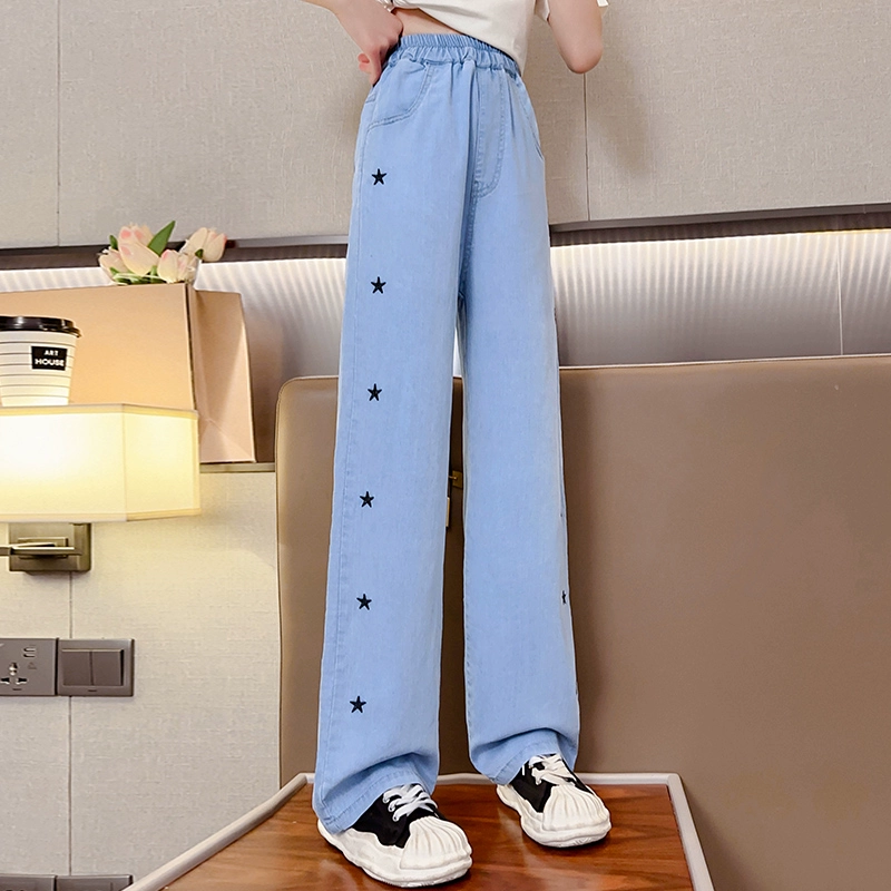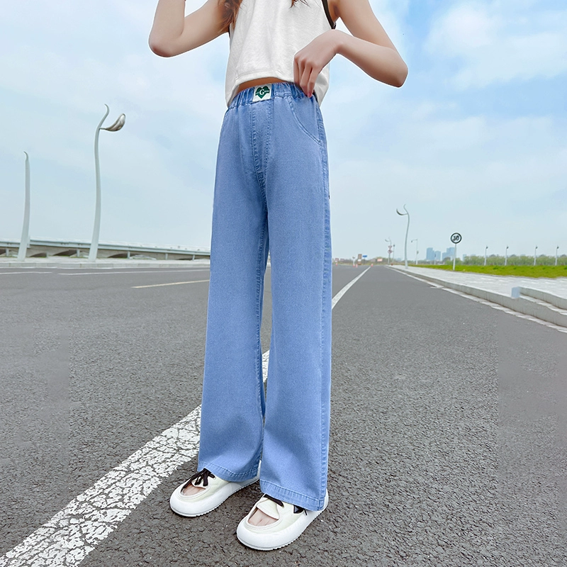 Denim spring and autumn girls' thin wide-leg pants for junior high school students