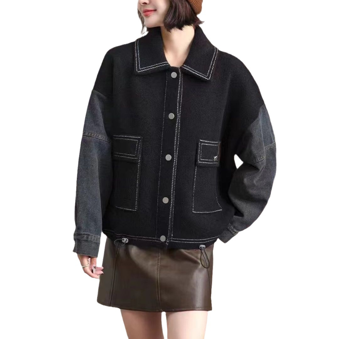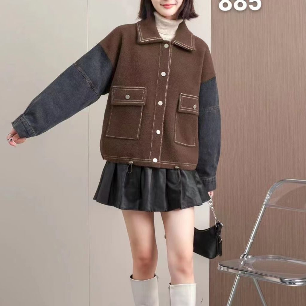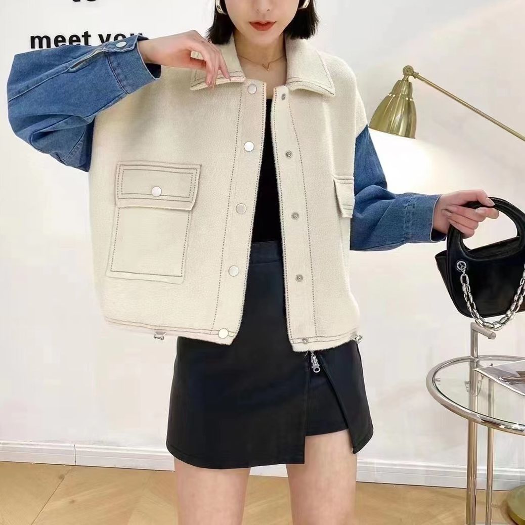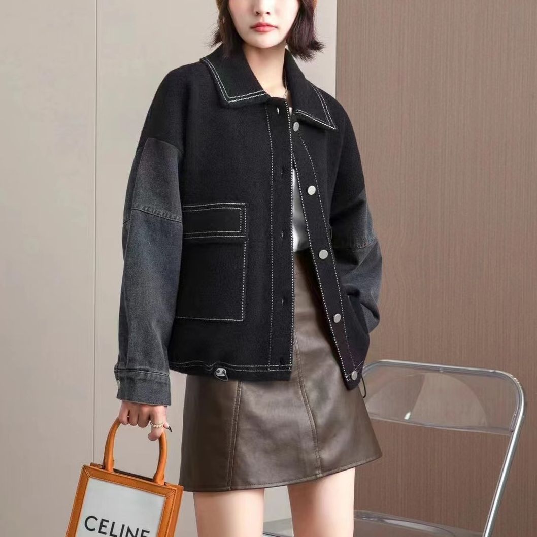 | nameOriginal | Denim Stitching Woolen Coat Women's 2024 Spring New Outfit Short Loose Knitted Cardigan Women's Fashion Top |