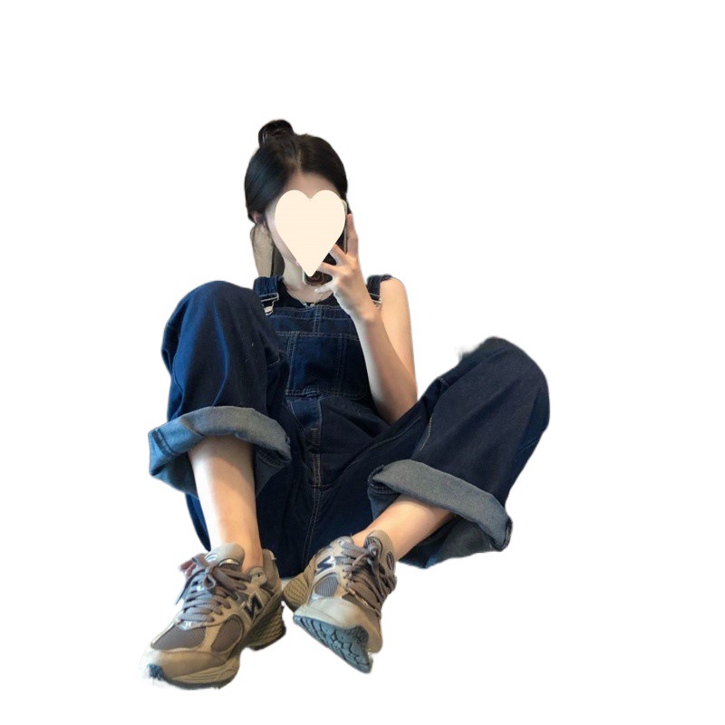 Denim Strap Pants Women’s Summer 2023 New Design Sense Niche Korean Style Loose Straight Wide-leg Pants for Small Men