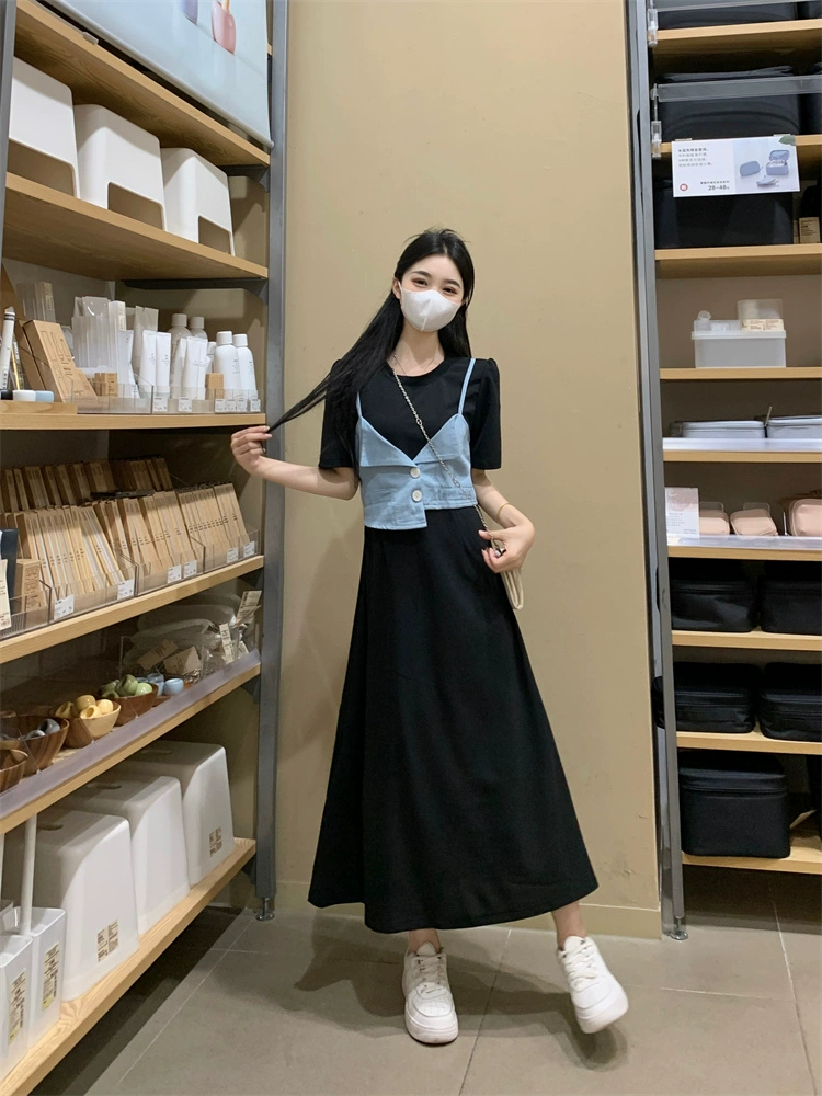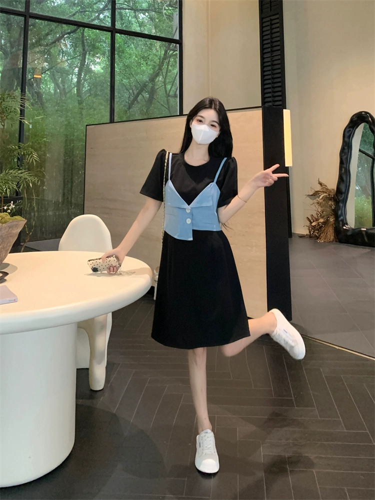 | nameOriginal | Denim Summer Belly Covering Little Black Dress Fashionable Fake Two Piece |