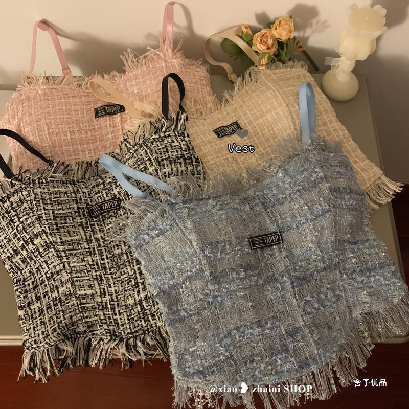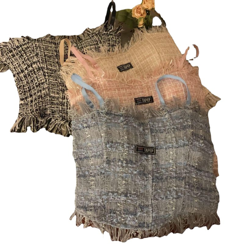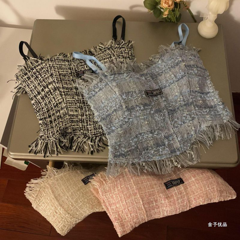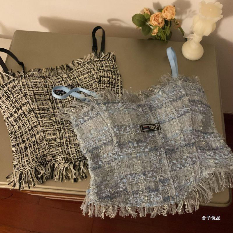 | nameOriginal | Denim Tassel Camisole Women's Inner Spice Girl Outer Wear with Chest Pad Beautiful Back Spice Girl Base Sexy All-match Top |