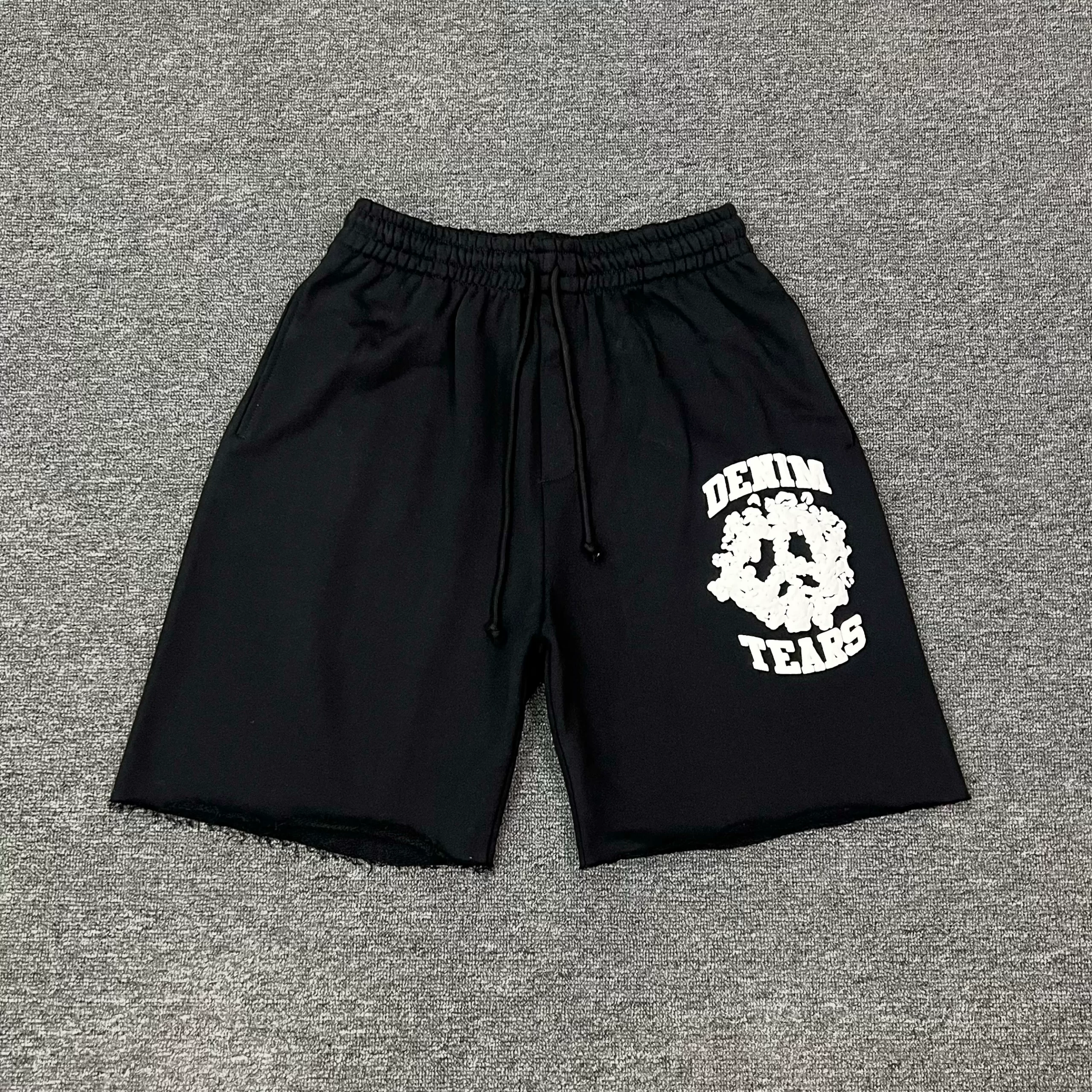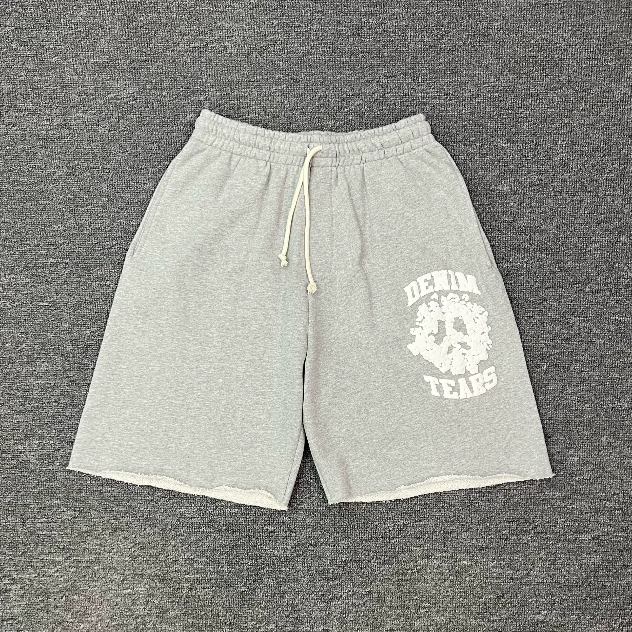 DENIM TEARS UNIVERSITY foam printed kapok American high street loose raw edge shorts
