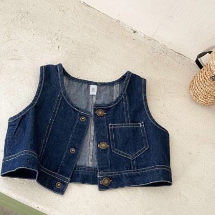 | nameOriginal | Denim vest girls boys and girls short round neck loose outer wear western style waistcoat all-match vest spring and autumn generation hair |