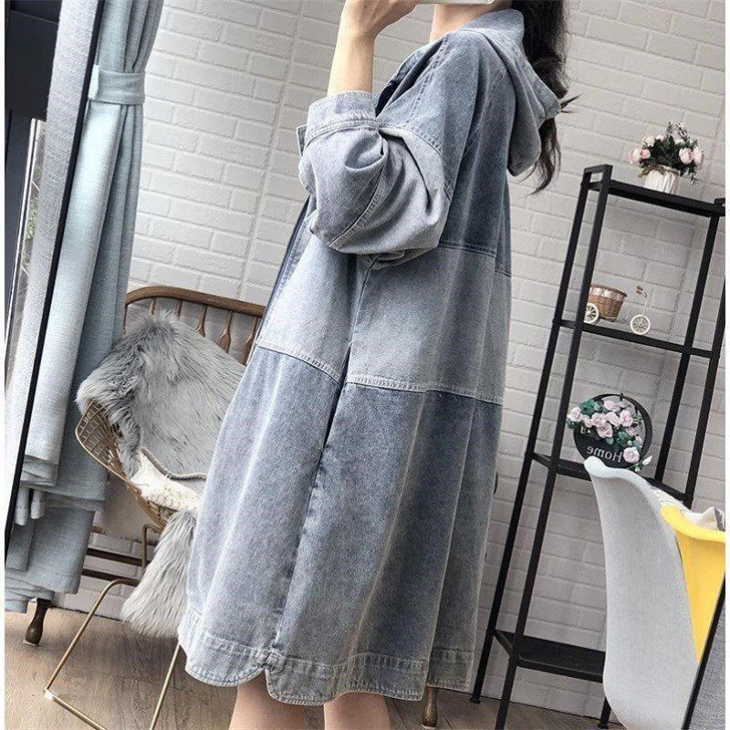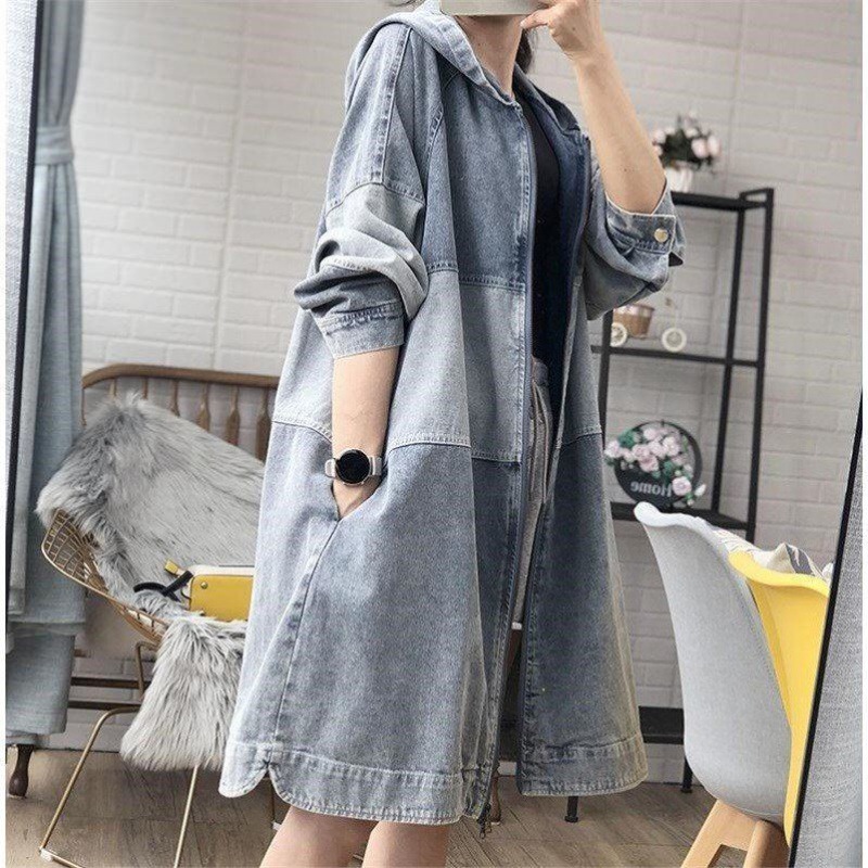 | nameOriginal | Denim windbreaker women's Korean-style mid-length loose spring and autumn new fashionable elegant hooded stitching coat plus size trendy |