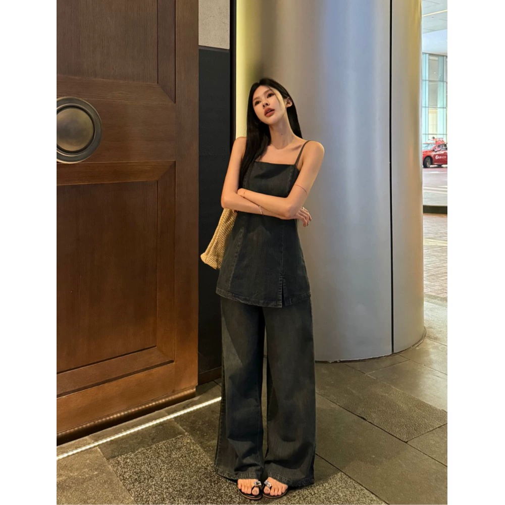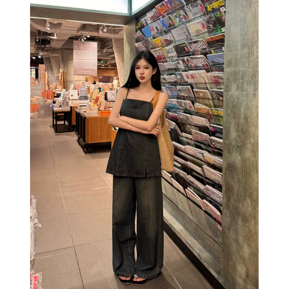 | nameOriginal | Denim women's summer washed trousers two-piece set with tube top |