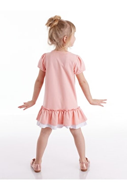 Girl's pink dress. With 2 separate layers of ruffled hem and rabbit applique, this summer will be your girl's favorite dress. 95% Cotton 5% Elastane