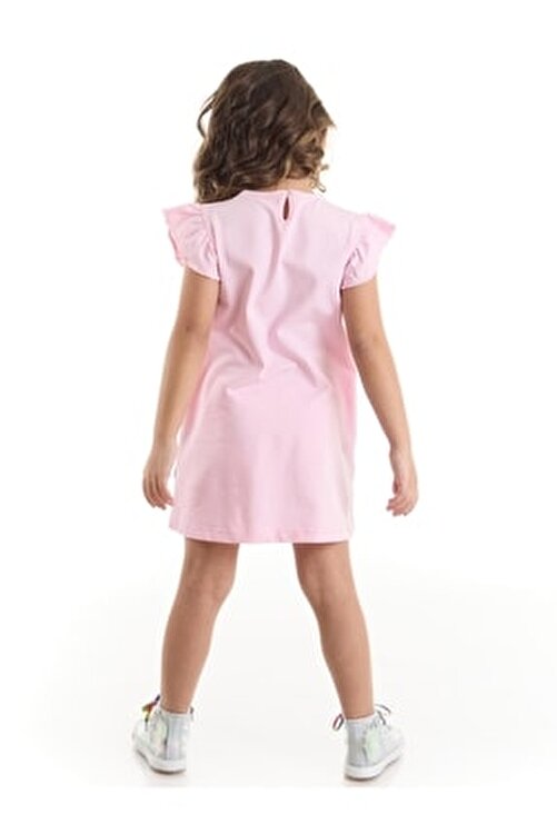 Girl’s dress with cat print on cotton combed fabric with ruffle sleeves. 95% Cotton 5% Elastane