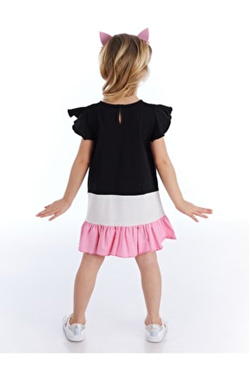 Dress made of cotton combed fabric with ruffles at the hem, cat print. Cat’s ears are 3D. 95% Cotton 5% Elastane