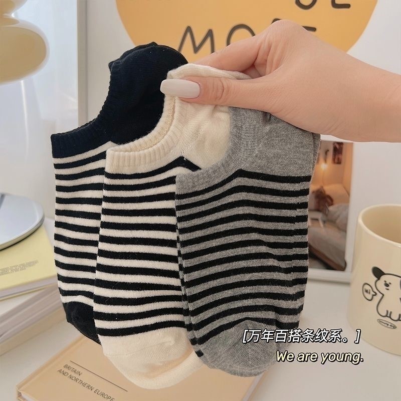 | nameOriginal | Deodorant Sweat Absorbing Striped Socks Women's Short Socks Summer Thin Japanese Sports Breathable Low-Heel Short Boat Socks |