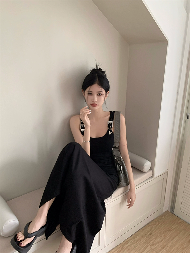 Design black summer niche a-line suspender dress