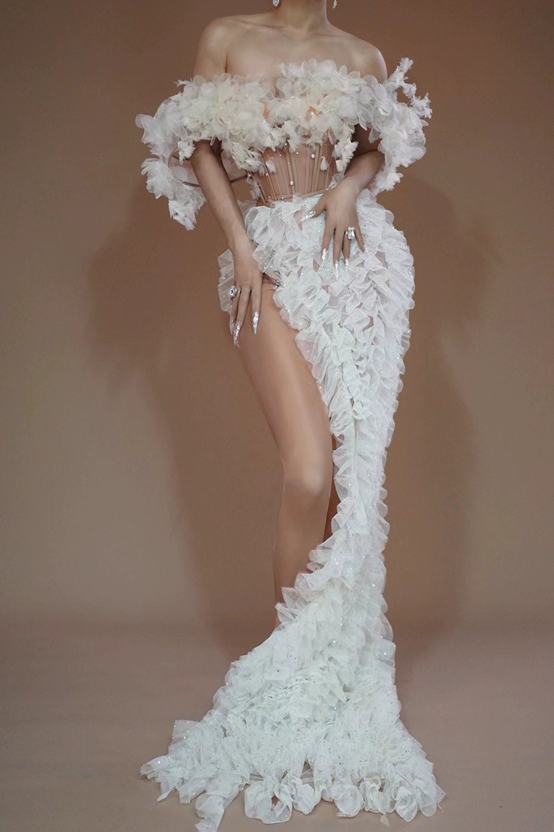 Design celebrity perspective strapless high slit mesh skirt