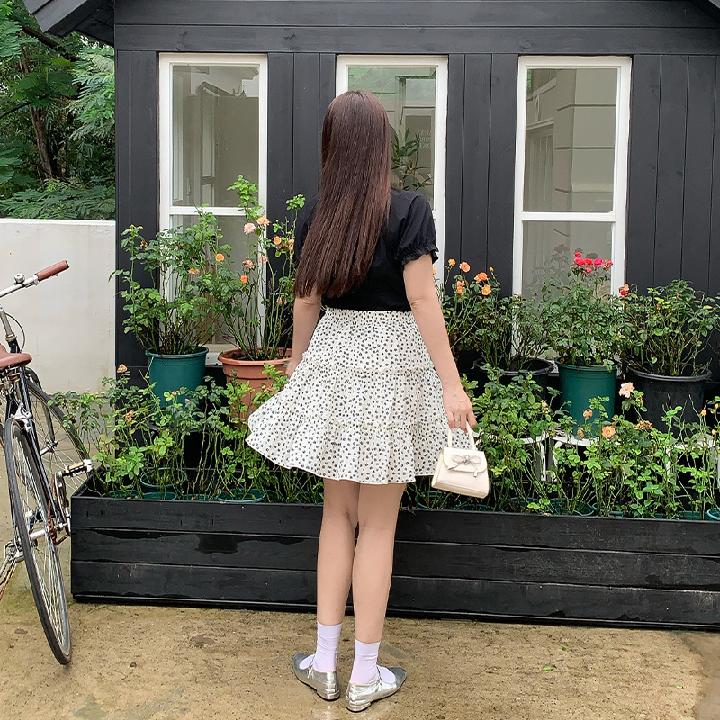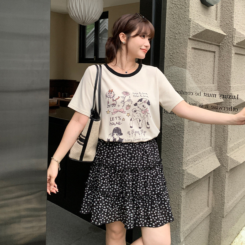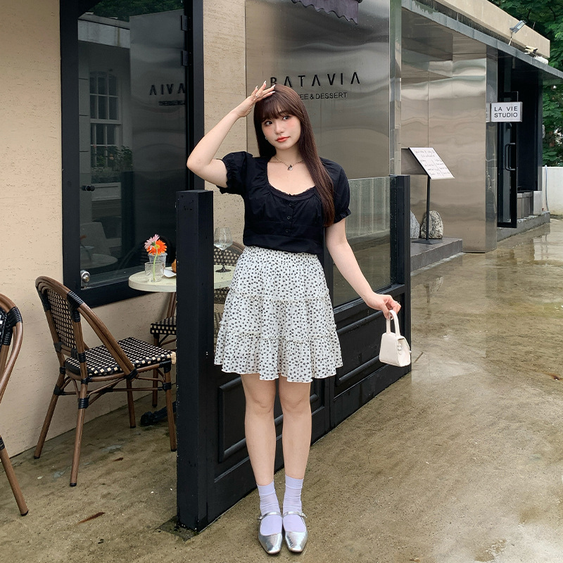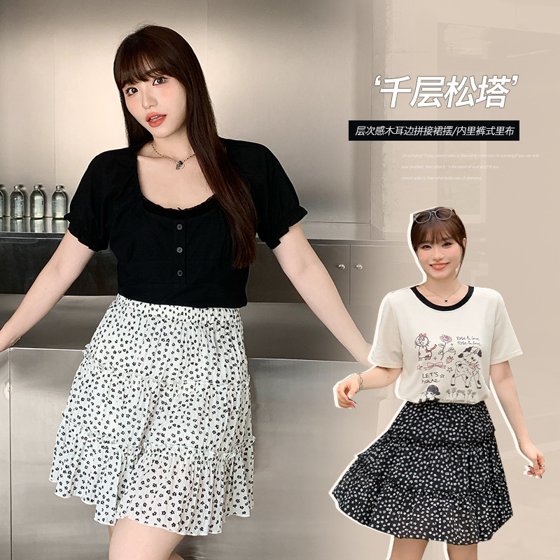 Design floral skirt summer plus size chubby girl niche high waist A- shaped sweet style slim cake skirt 63486
