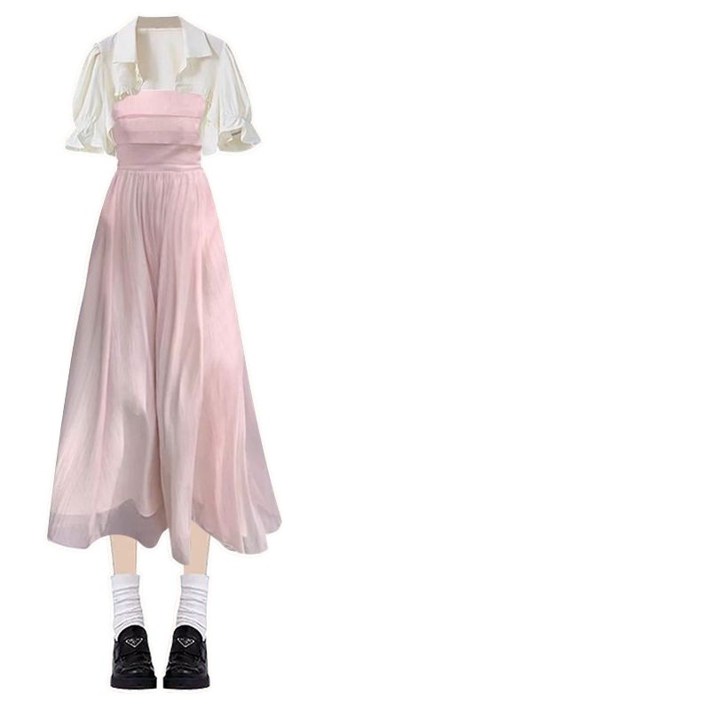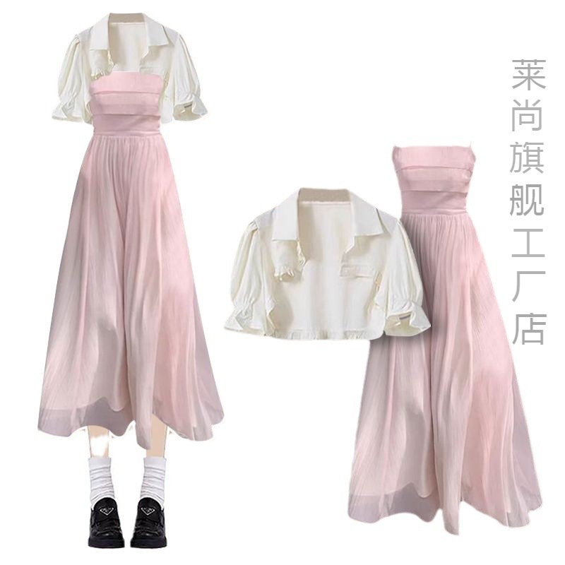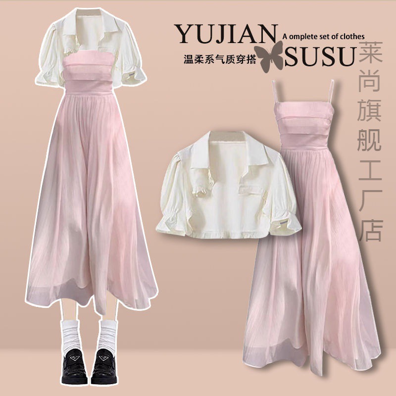 | nameOriginal | Design Gentle Summer suit Fairy Outer Wear Short-sleeved Pink and Purple Slip Skirt Two-piece Elegant Set |